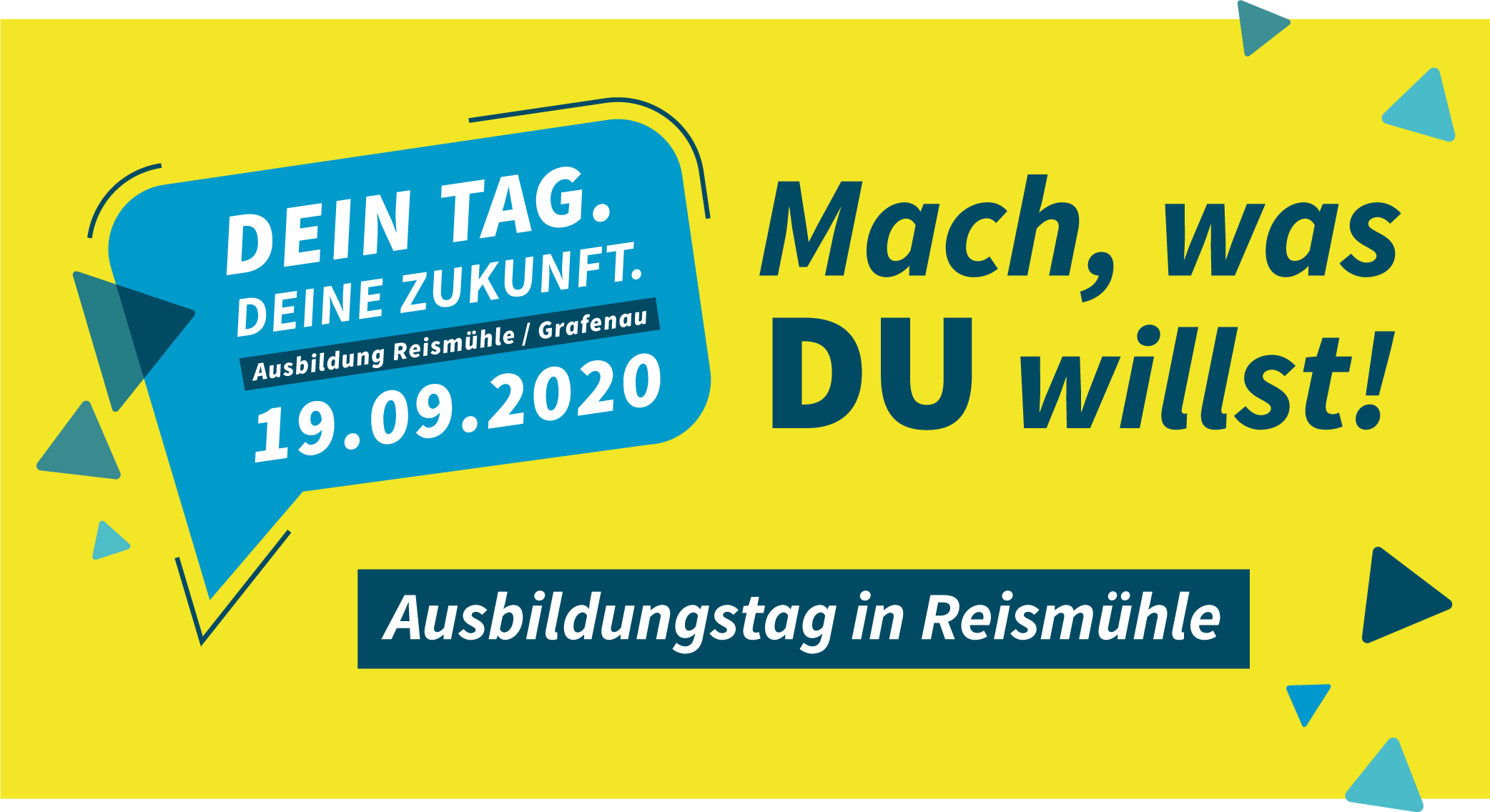 Auch in diesem Jahr geht es wieder um das, was ihr wollt! „Dein Tag. Deine Zukunft“, der Ausbildungstag in Reismühle liefert auch heuer wieder etliche Gelegenheiten, sich über das Ausbildungsangebot zu informieren.